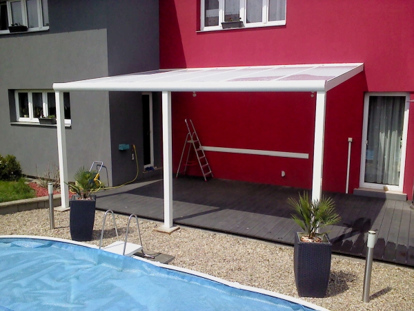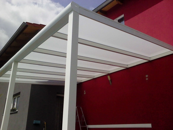 Střešní krytina: ECO a PROFI - polykarbonát tloušťky 16 mm mléčný nebo čirý (pro každý typ je možno si vybrat), DELUXE - čiré bezpečnostní sklo, případně za příplatek mléčné bezpečnostní sklo