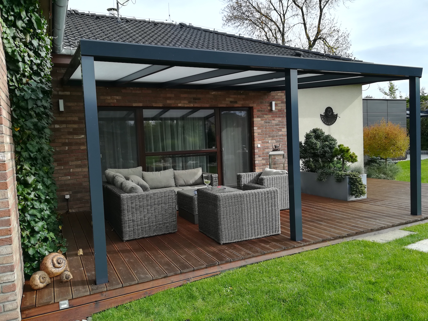 Hliníková pergola v odstínu antracit RAL 7016, rozměr 700 x 350 cm, provedení PROFI